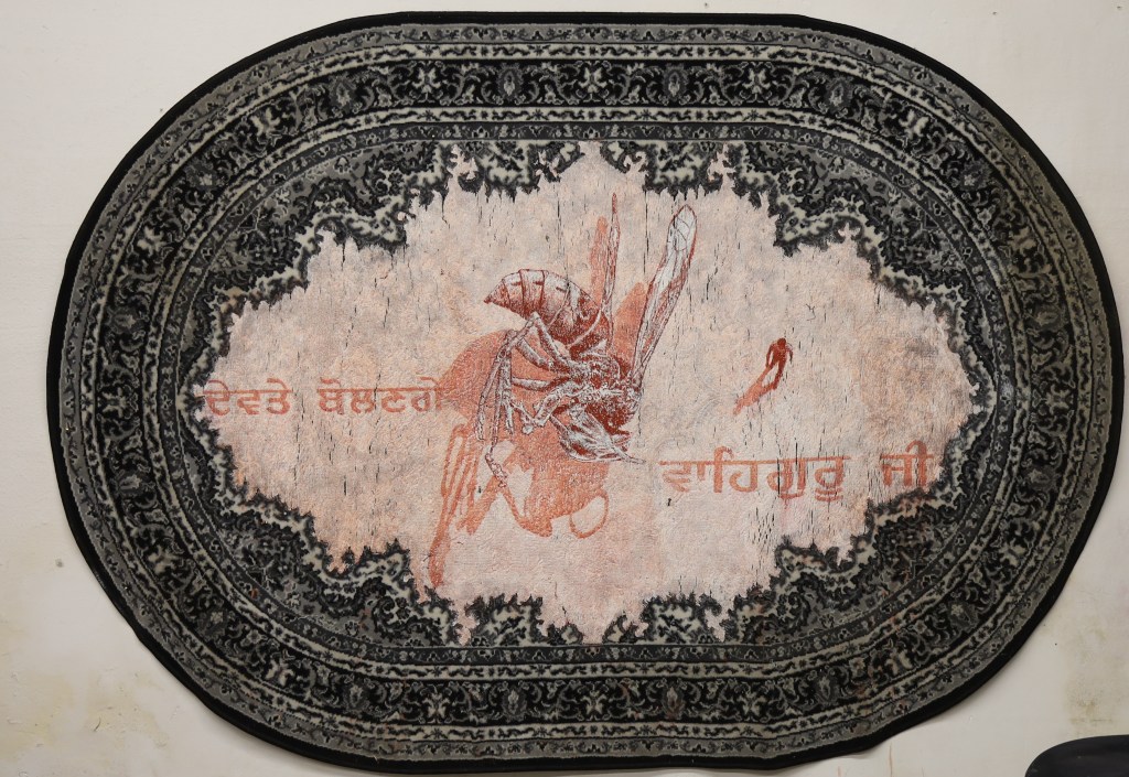Der weisse Sand des Mohndes I, Akryl auf Teppich, 117 x 140 cm, 2014
